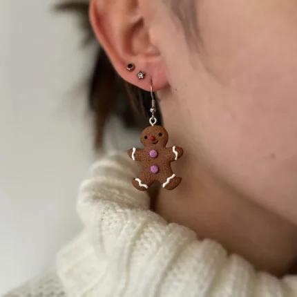 Kolczyki ludziki z piernika fioletowe guziczki